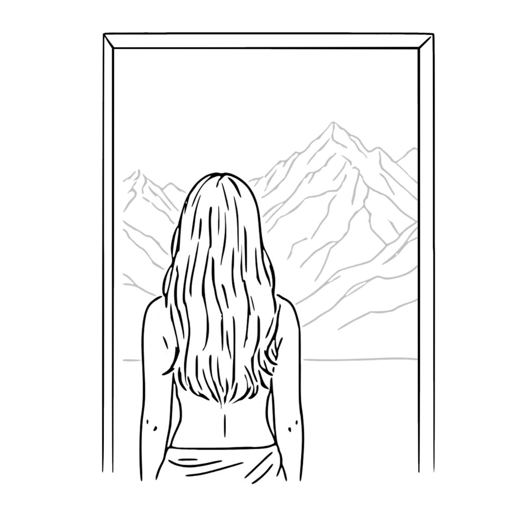 She stands in tear-soaked infinity,